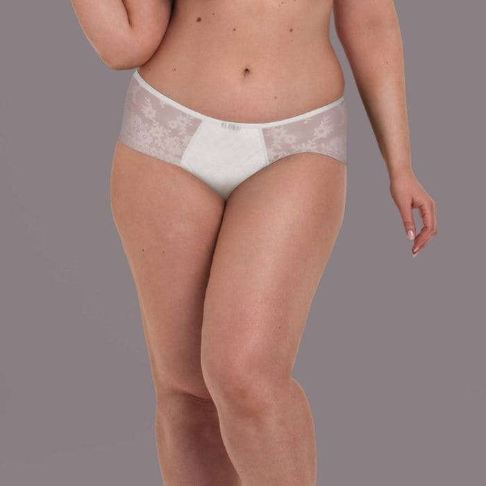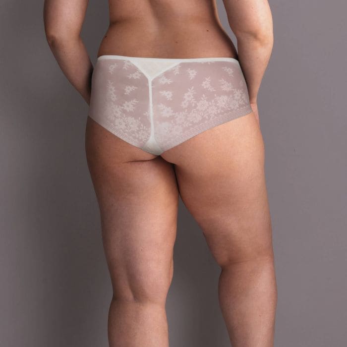 Como moderno hipster, Rosemary se presenta con una parte delantera coqueta en dibujo integral de cuadros con un forro opaco. El encaje transparente en las nalgas y los laterales proporciona ligereza y se adapta agradablemente a la piel. Sin goma y dotado de un borde de encaje plano, no aprieta y no marca bajo la ropa ajustada.