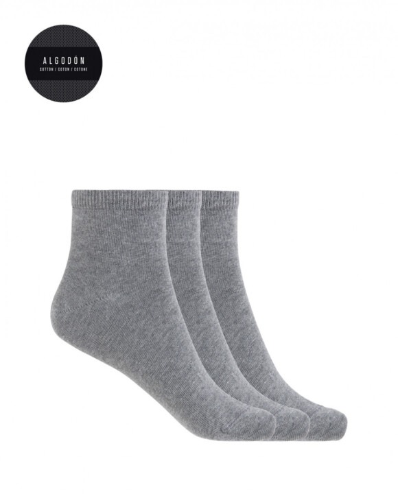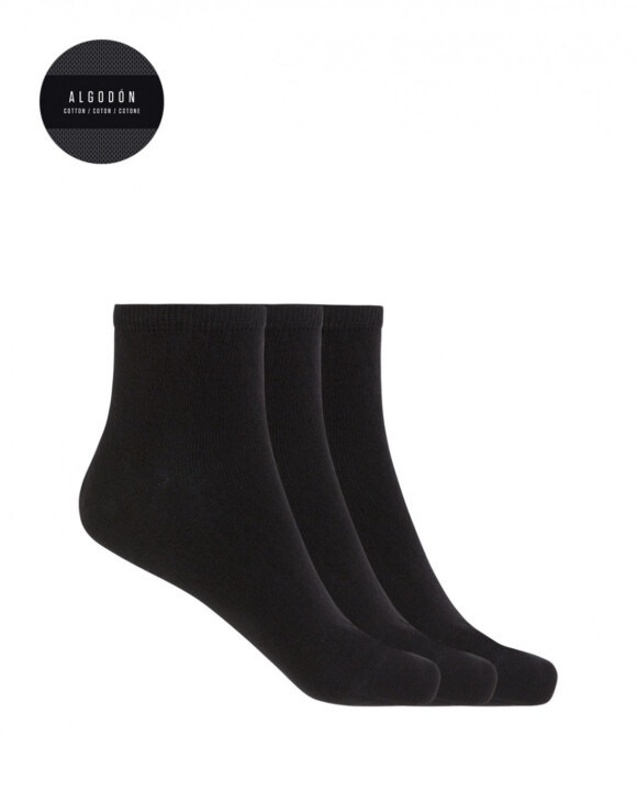 Pack de 3 pares de calcetines de algodón tobilleros lisos. Con tratamiento Deodorant con efecto antihongos, antibacteriano y evita el mal olor de pies.
